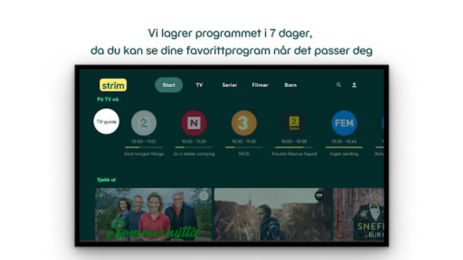 Watch movies and series from HBO Max, Viaplay Film & Series, Paramount +, Nordisk Film + and TV 2 Play Movies and series. Get both live TV and a weekly archive from TV 2, TV3, TVNorge, MAX, V4 and many more TV channels, both Norwegian and international. If you missed something on TV in the last week, you can find it in the archive. You can also rewind two hours in TV shows that have already started. If you find it difficult to find your way in the jungle of content, we share strip tips on strim.no.