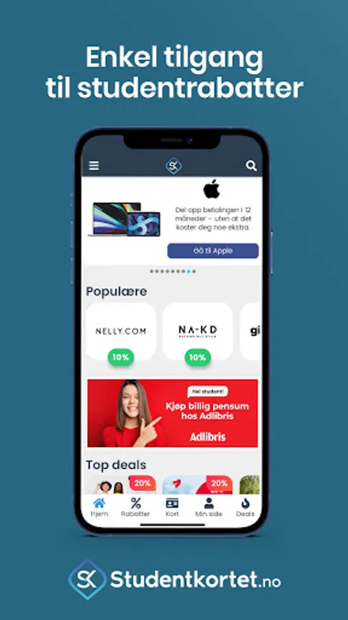 Download the app to get access to Norway's best student discounts on products such as clothes, beauty, PC, Mac, travel, curriculum, shoes, food and much more.