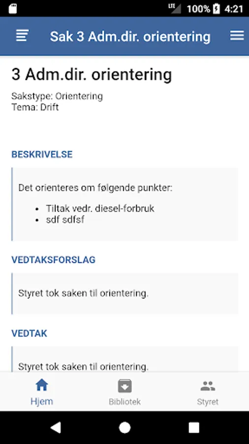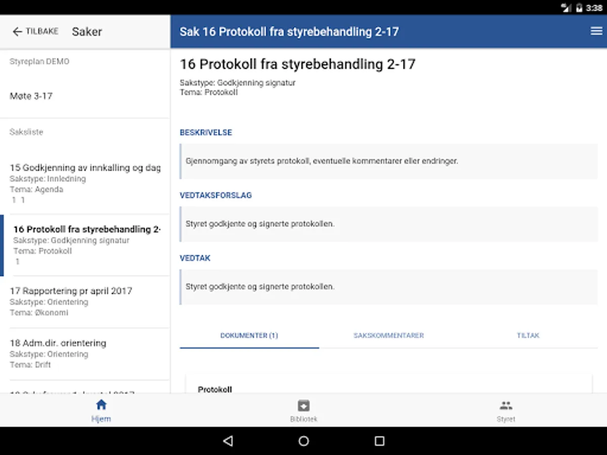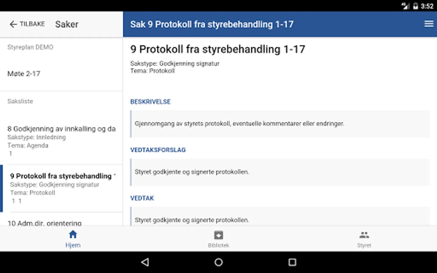• Always access to meeting and case documents. It is easy to prepare and call for a board meeting and general meeting.