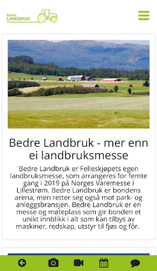 Better Agriculture The app gives you a complete overview of everything that is going on at the Better Agriculture Fair at the Norwegian Trade Fair: