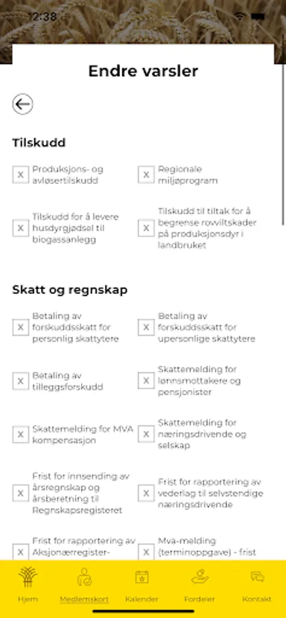 Member app for the Norwegian Farmers' Association with membership card, overview of the benefits you have as a member and push notification of important deadlines in agriculture and news from the Norwegian Farmers' Association.