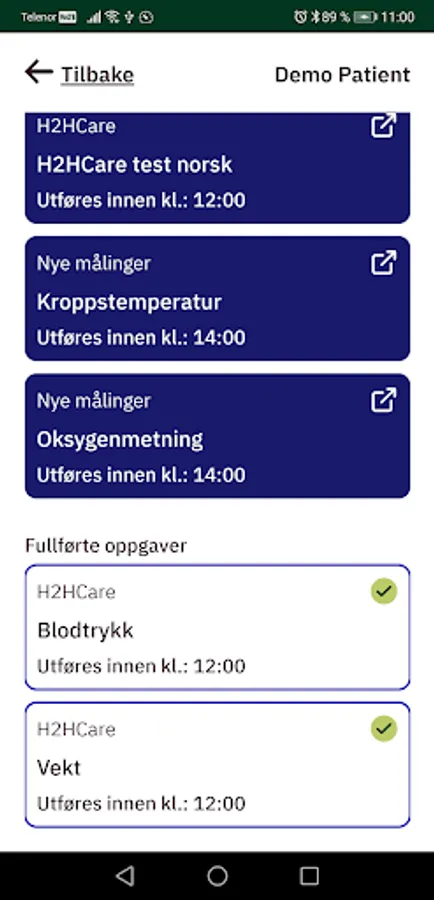 For you as a patient, the remote monitoring consists of a mobile application that you can install on any mobile phone or tablet, and you may also have one or more medical sensors to measure vital data such as weight, heartrate, blood pressure, oxygen saturation, temperature or blood sugar as part of the follow-up. The mobile application and sensors cannot be used until you are registered as a patient by the health service that is responsible for your treatment and follow-up.