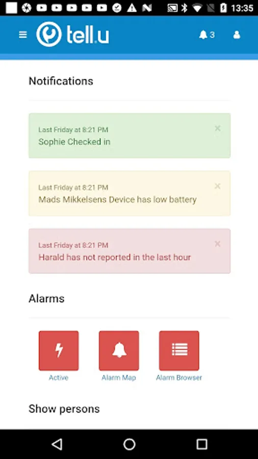 The app provides you with the functionality to get notified if any alarms are triggered in SmartTracker.