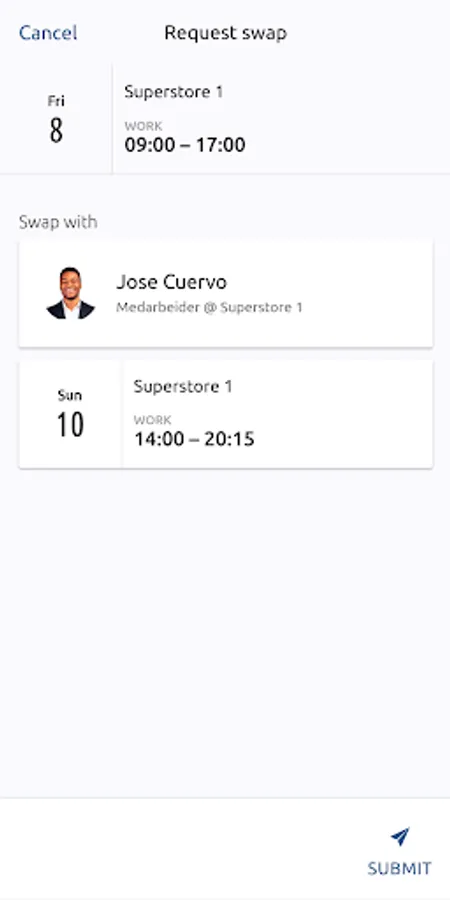· Send request to swap a shift with a colleague