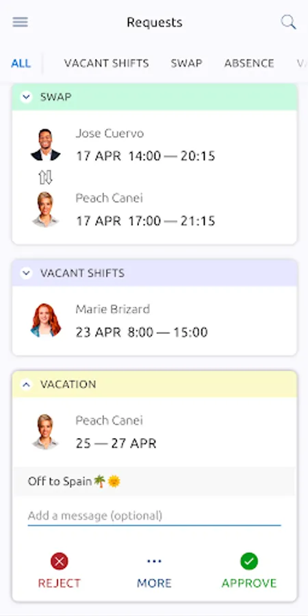 · Approve shift swaps in the app