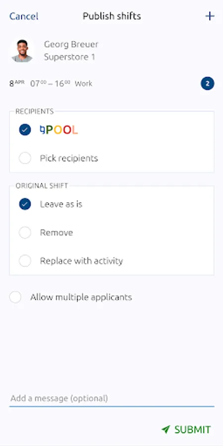 · Publish vacant shifts straight from the app to a pool of subscribers