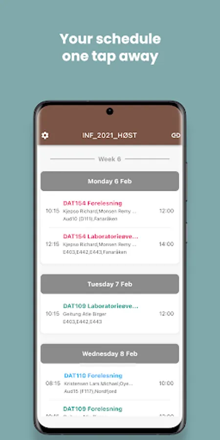 This app retrieves your timetable from Timeedit. It's easy to set up just follow the steps in the app, and easy to use. You'll get information such as the room number for lectures, who's teaching, a description (if provided), and a button to open Mazemap to find the quickest route to the lecture hall. All this one tap away.