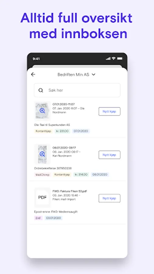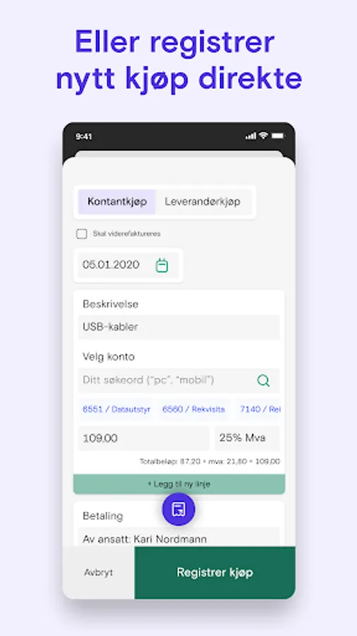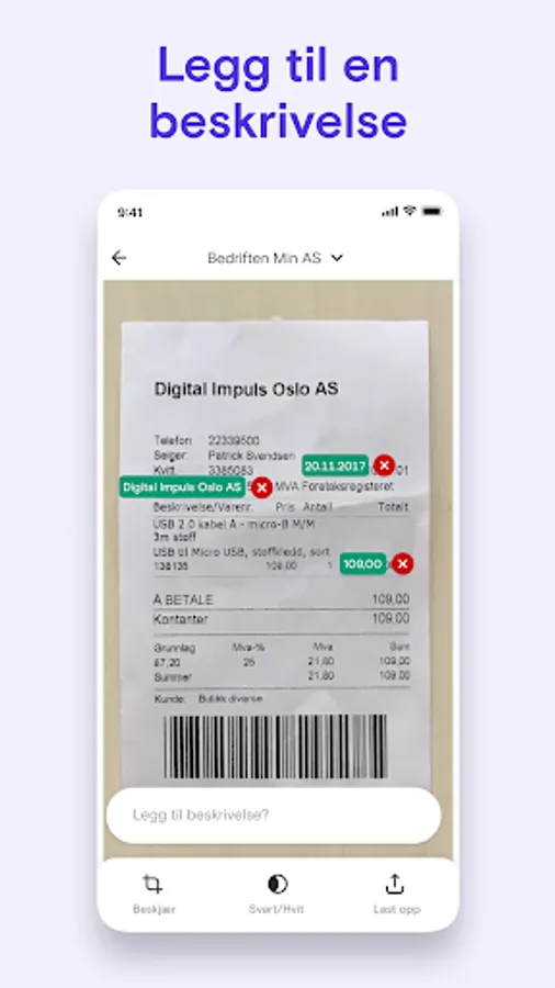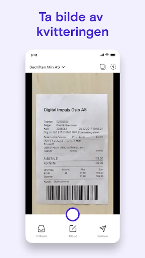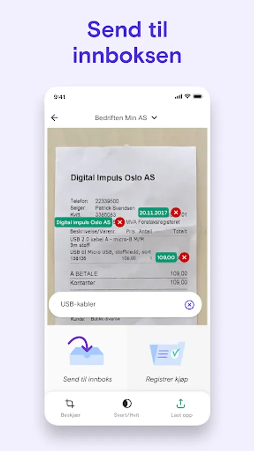 Take a picture, register the purchase immediately, or send it to your inbox,