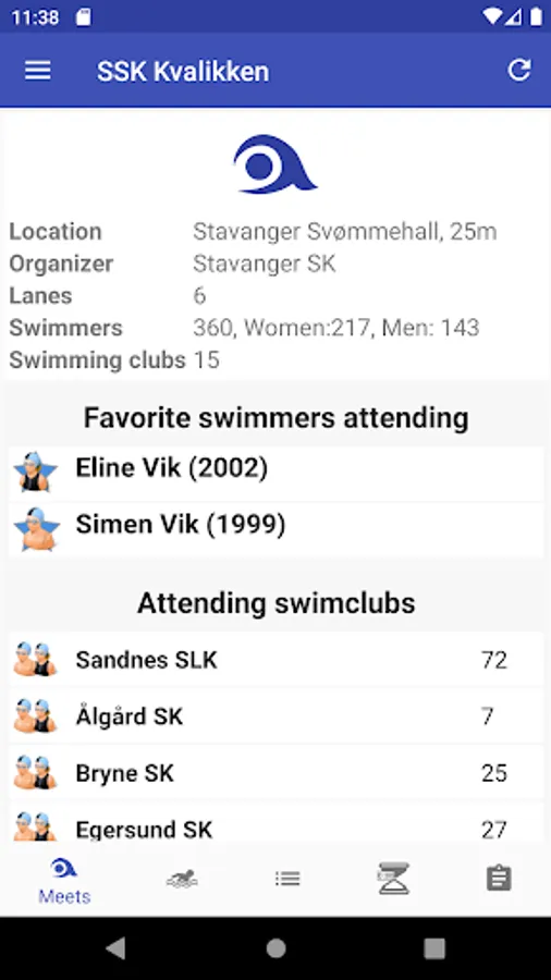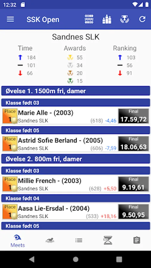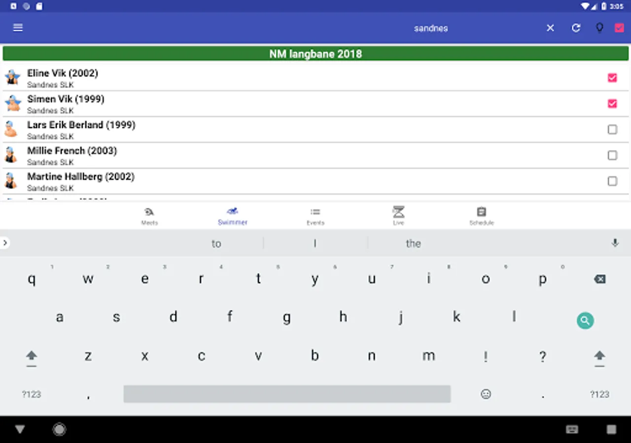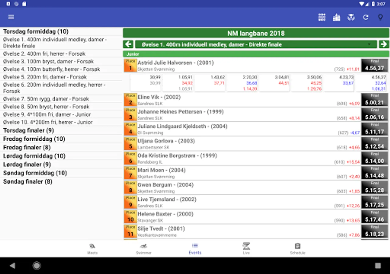 This application shows the results from the swimming competitions in Norway, which is also available free of charge on http://ltmobil.medley.no/