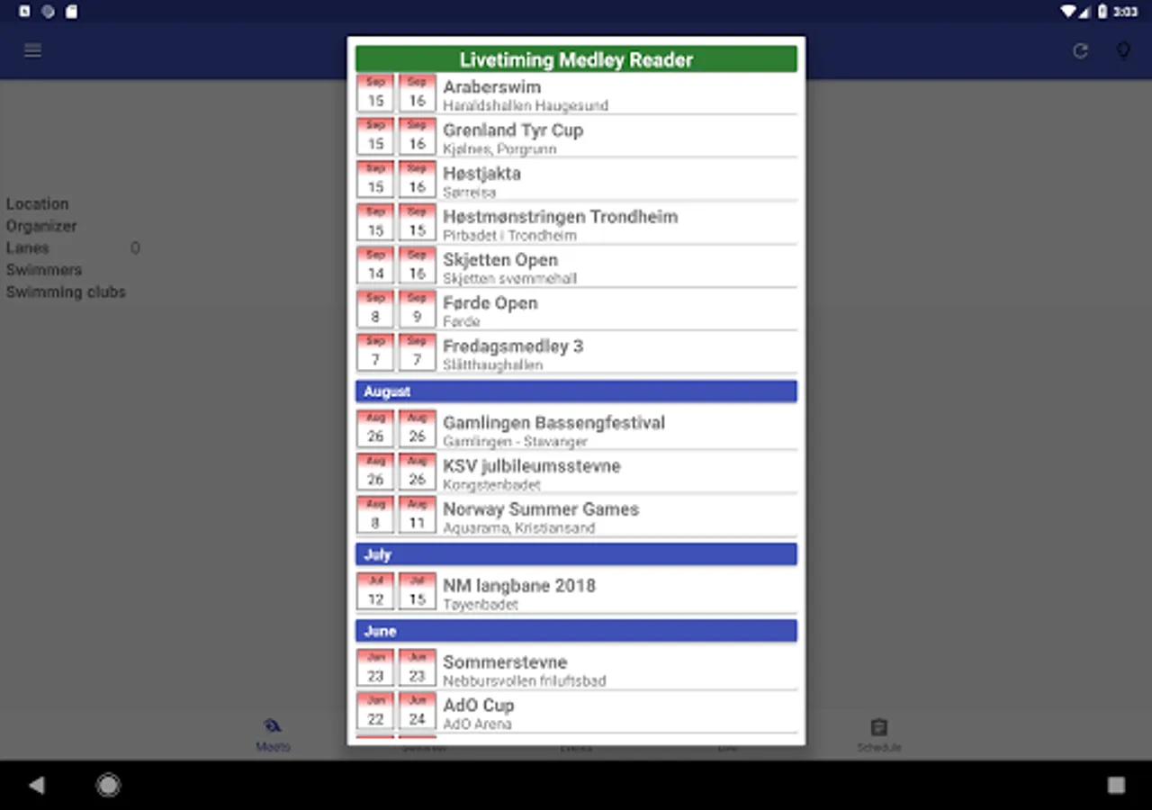 Live Timing Medley Reader is free to download, but requires subscription to view the ongoing and future competitions. The application is developed independently of the Norwegian Swimming Federation and the services delivered livetiming.medley.no. It is therefore not possible to say anything about how long this app will be able to function, and therefore it is added up to a monthly subscription-based payment in the application.