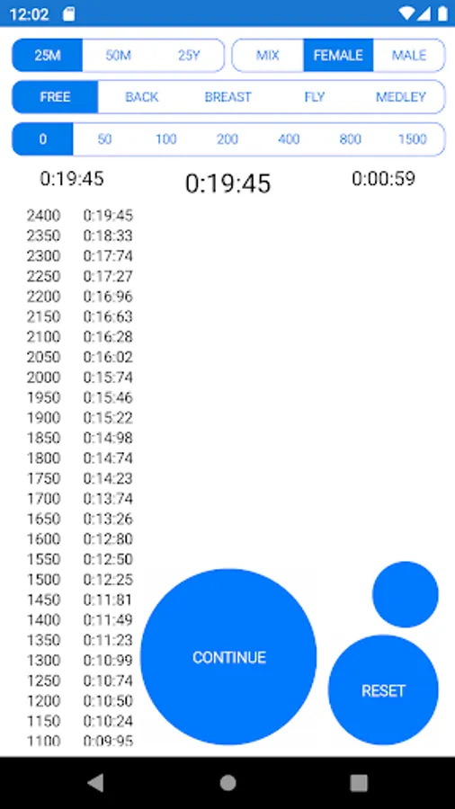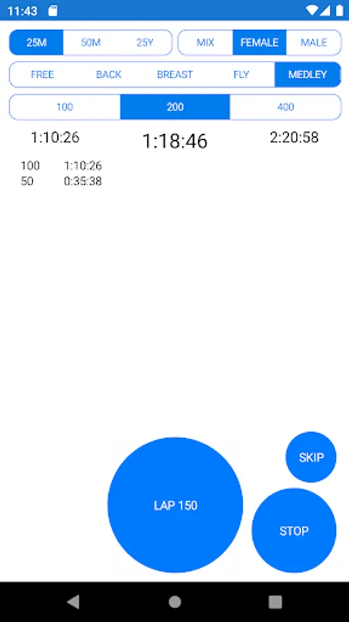 Easy stopwatch for the audience at the swim event. End-of-life guesses based on lap times based on a median of thousands of swimmers of all ages. Want to guess best for younger competition swimmers, since the majority of data is from Norwegian swimming events over the last 10 years