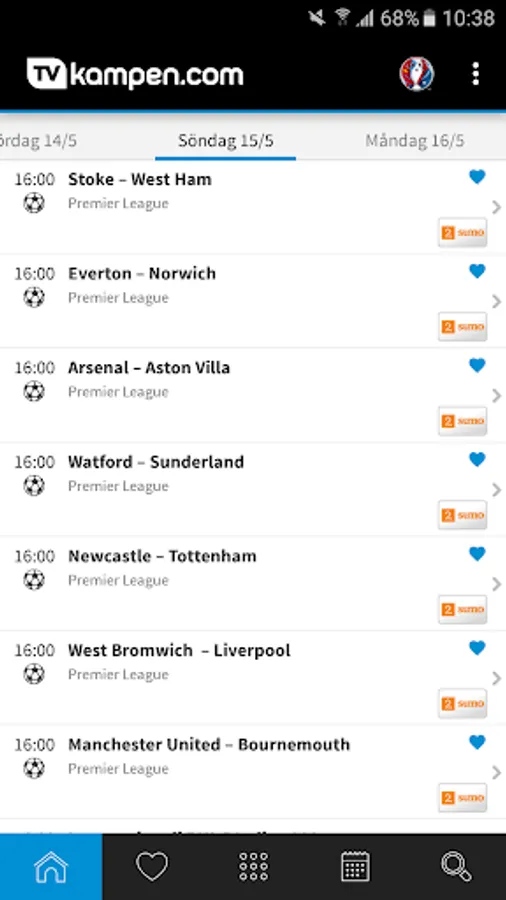 Add games to your calendar, reminders, share with friends on Facebook and Twitter. You can of course also filter out certain sports and channels.