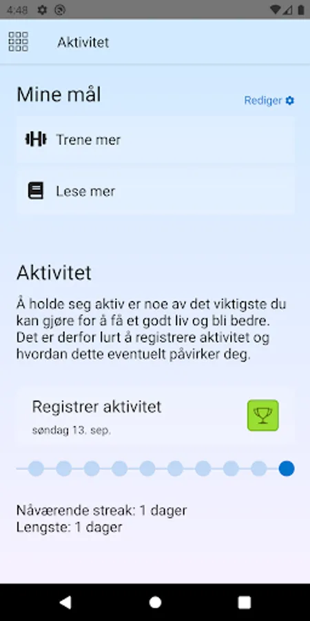 iTandem is a digital interaction tool for patients and healthcare personnel. The application is intended as a supplement to the treatment of people in mental health care. Users can choose between modules covering topics such as sleep, medication, recovery and mood. Registrations within the selected modules can further be used actively in the treatment and contribute to a more individually adapted follow-up.