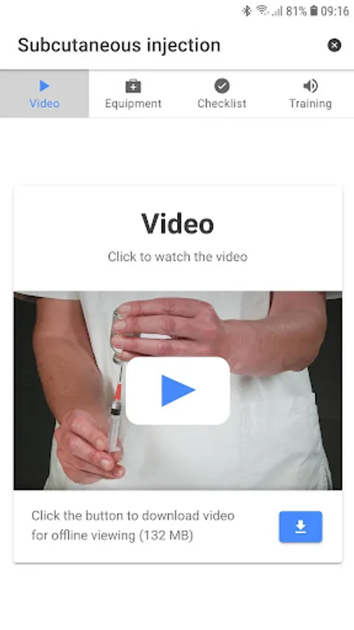 Video: Watch the procedures being demonstrated by a professional nurse. The video demonstrations include all the steps of the procedure performed in a realistic context. The videos can be downloaded for offline viewing.