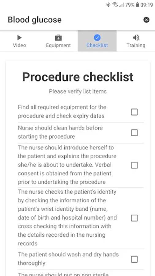 Checklist: Train the correct skills and sequential execution of the procedures.