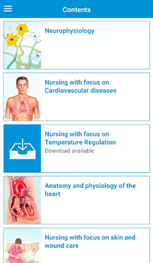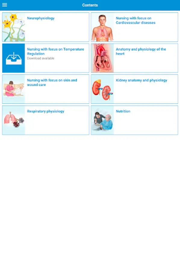 Erasmus Nursing is an E-learning app for European Nursing Education. The app provides resources in the following nursing subjects: Neurophysiology, Cardiovascular diseases, Temperature Regulation, Anatomy and physiology of the heart, Nursing with focus on skin and wound care, Kidney anatomy and physiology, Respiratory physiology and Nutrition.