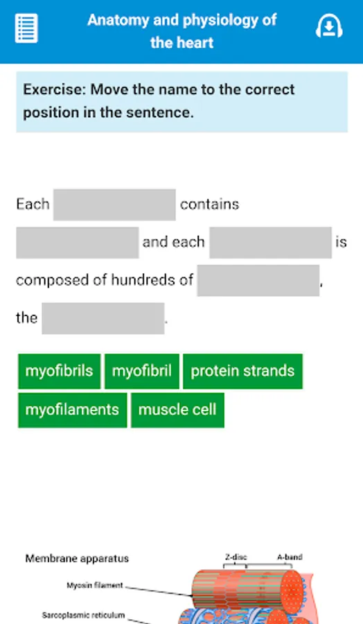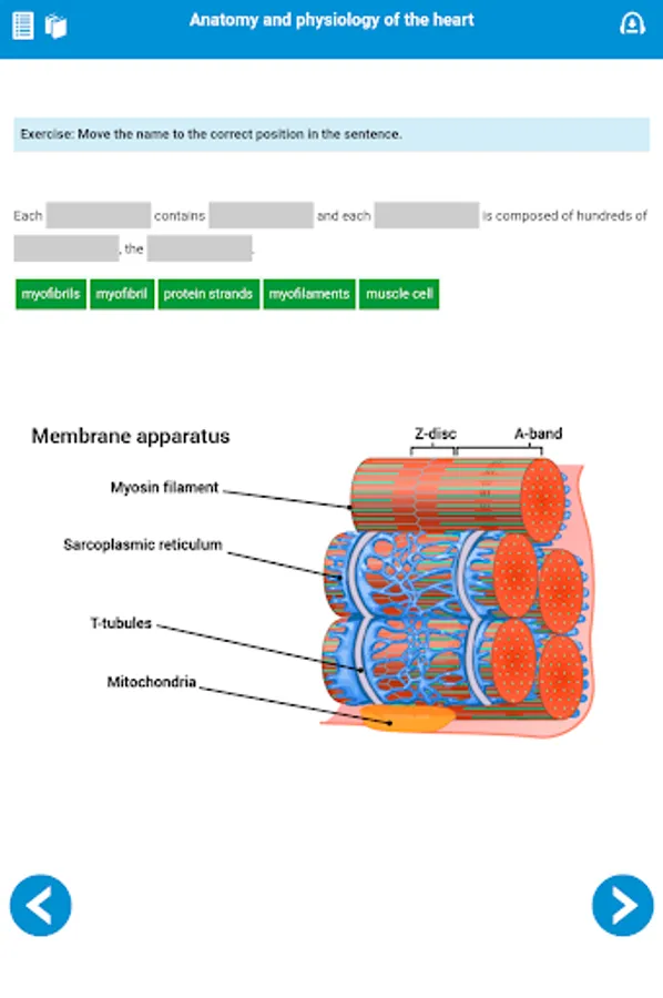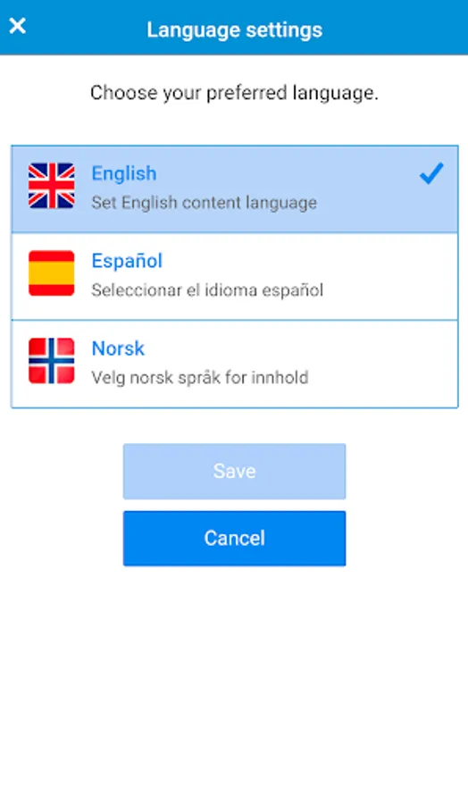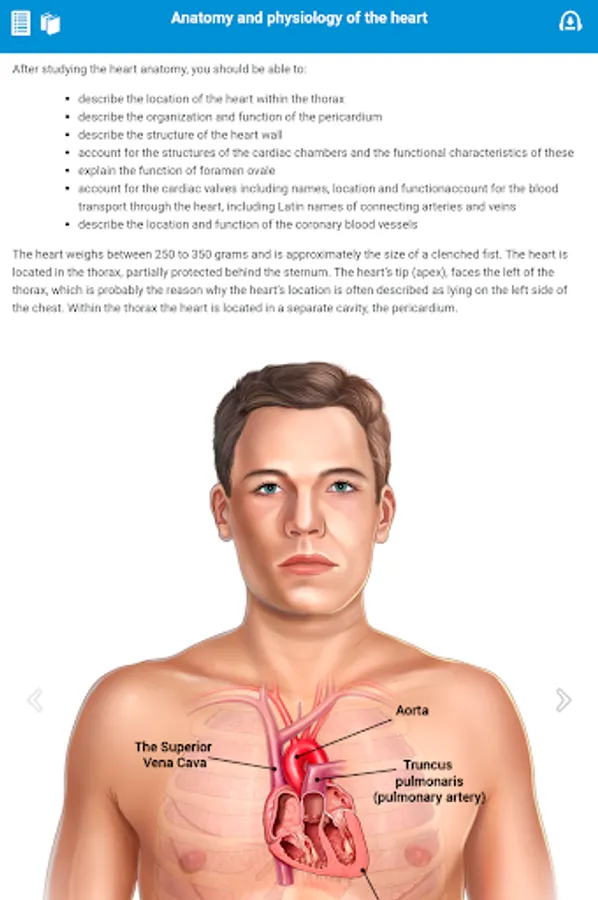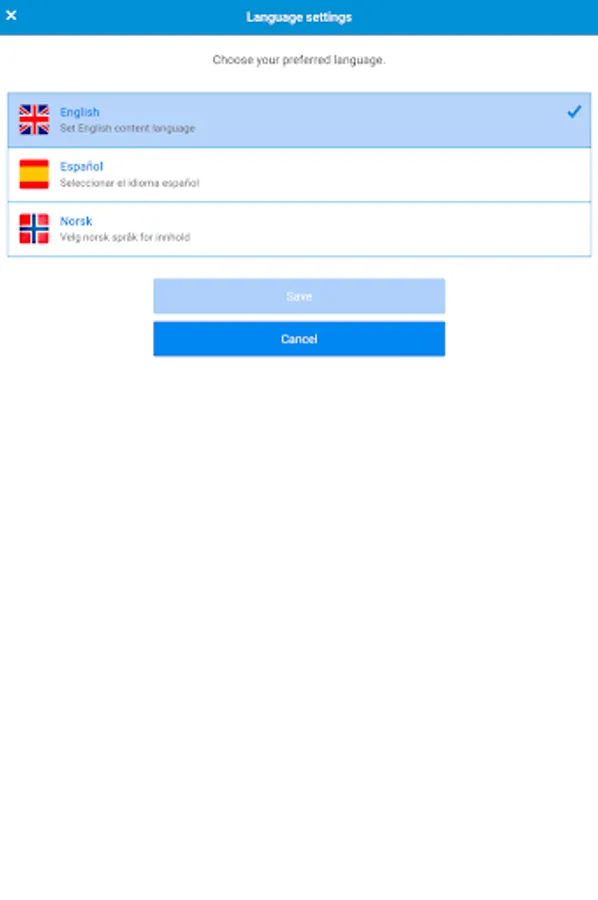 Use the app to download content to your device and bring it with you on the go. The content contains text, illustrations, images, interactive exercises and tests, animations and embedded narrations. All content is available in three languages: English, Spanish and Norwegian.