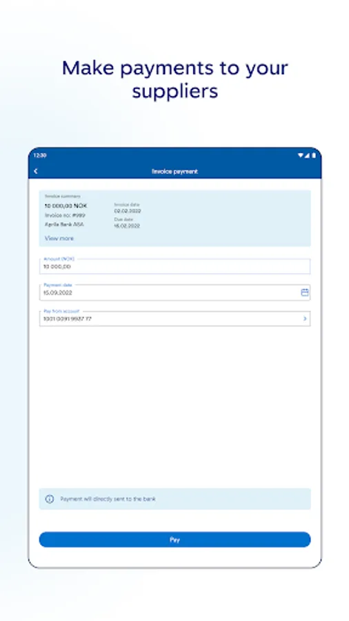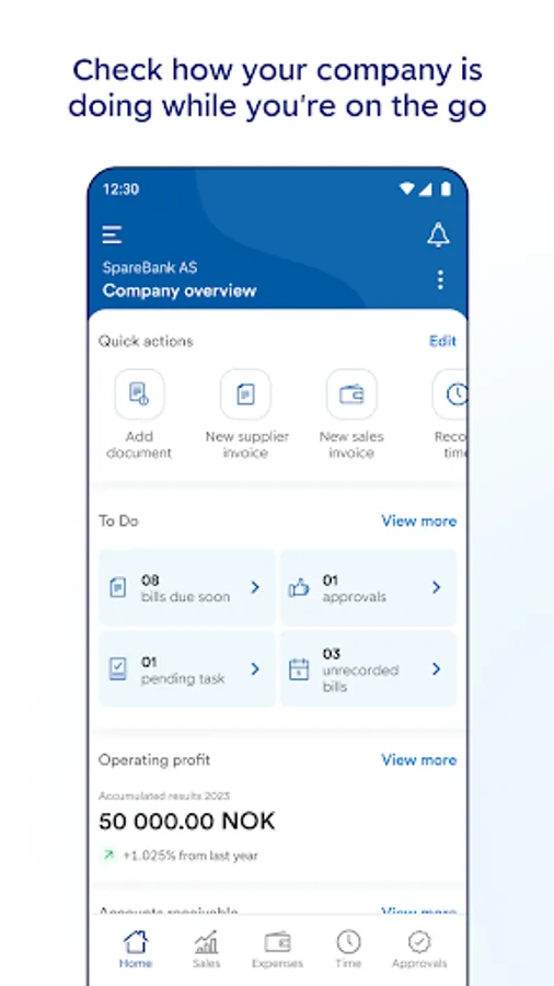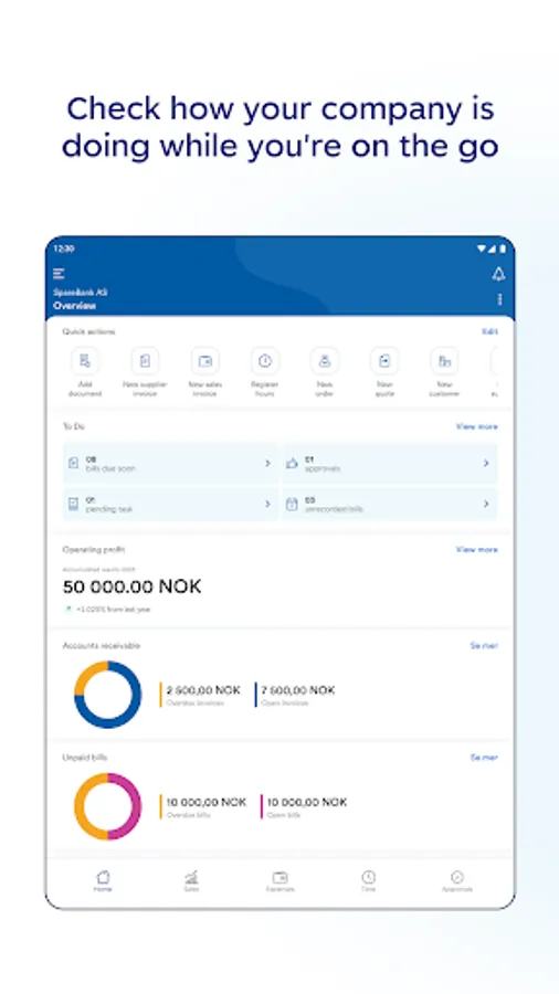 Log hours on the go, link them to orders and projects. Create customers and invoices with a few clicks. Save time by paying and booking incoming invoices and approve hours to be transferred to payroll – all of this in the app!