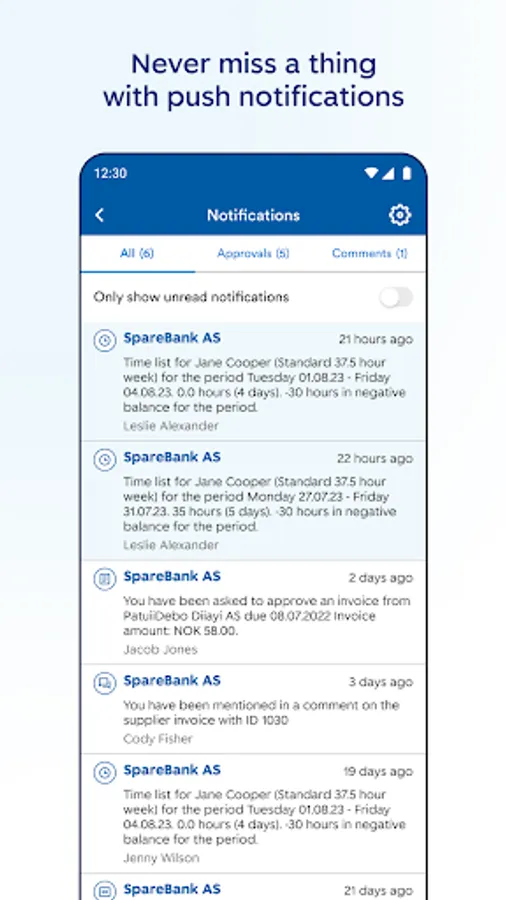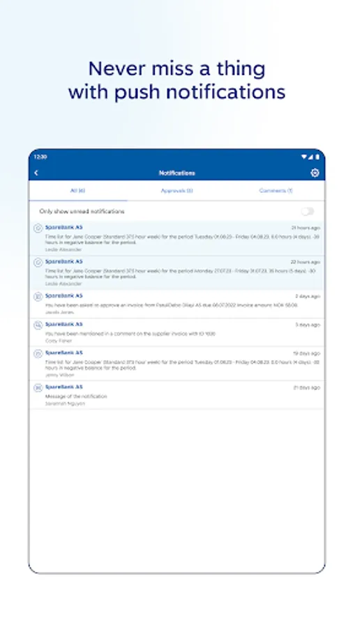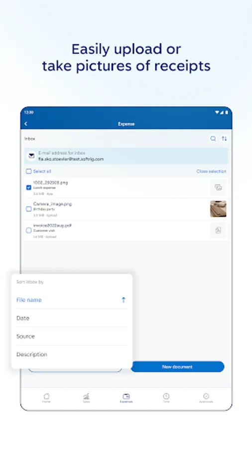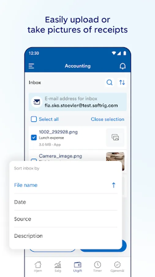 Follow up incoming invoices. See what is due, give the necessary approvals for payment, or pay and post to the accounts directly. Take a photo of the receipt, outlay and invoice, attach a comment and submit!