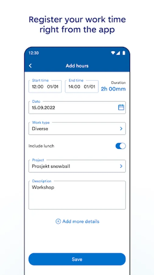 Log and keep track of your hours. Add orders and projects to your hours for straightforward invoicing.