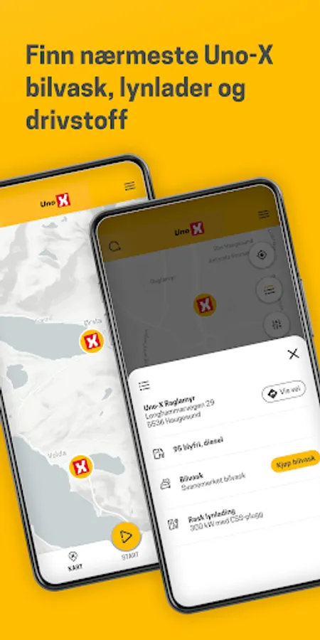 * Find the nearest car wash, lightning charger or fuel from Uno-X