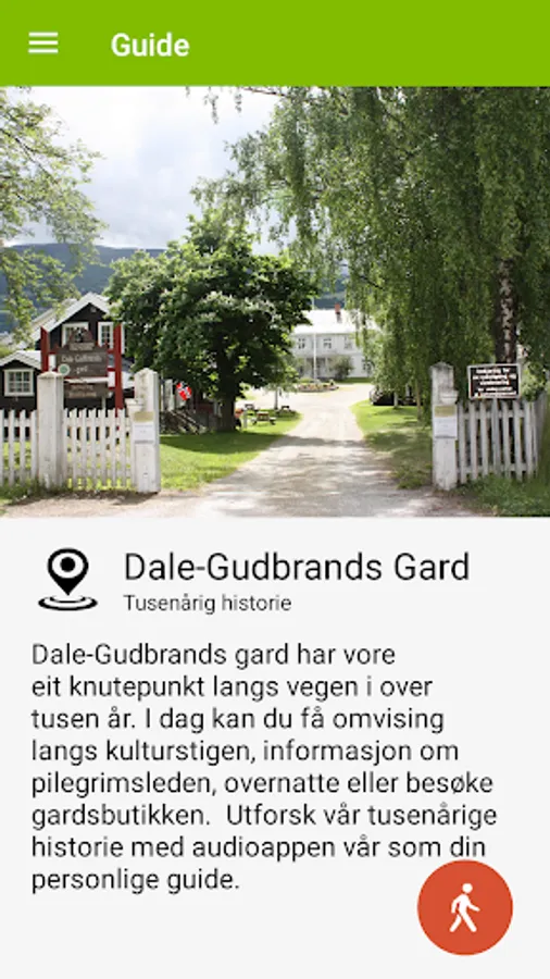 Hundorp and Dale-Gudbrands Gard has an important place in both the county's and Norway's history. The events that took place here played an important part in the Christianisation of Norway. Explore our thousand years of history with our audio app as your guide.