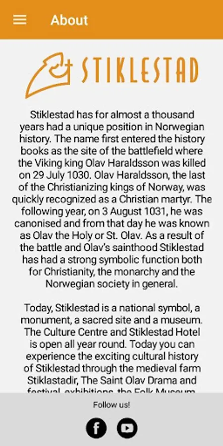 Use the app to explore exciting subjects at Stiklestad. Through the app you will get more information, pictures and movies that will make you get more out of your visit at the center.
