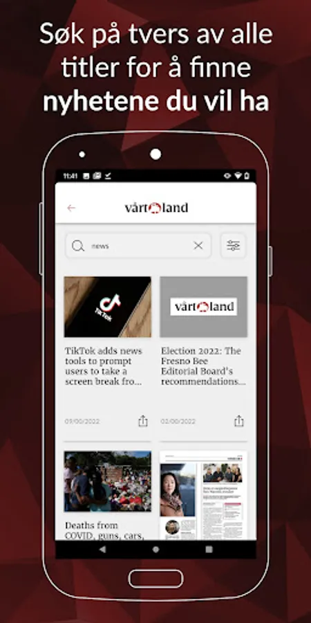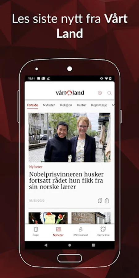 Username and password in the application are the same as you use to log in to the other digital services at Vårt Land.