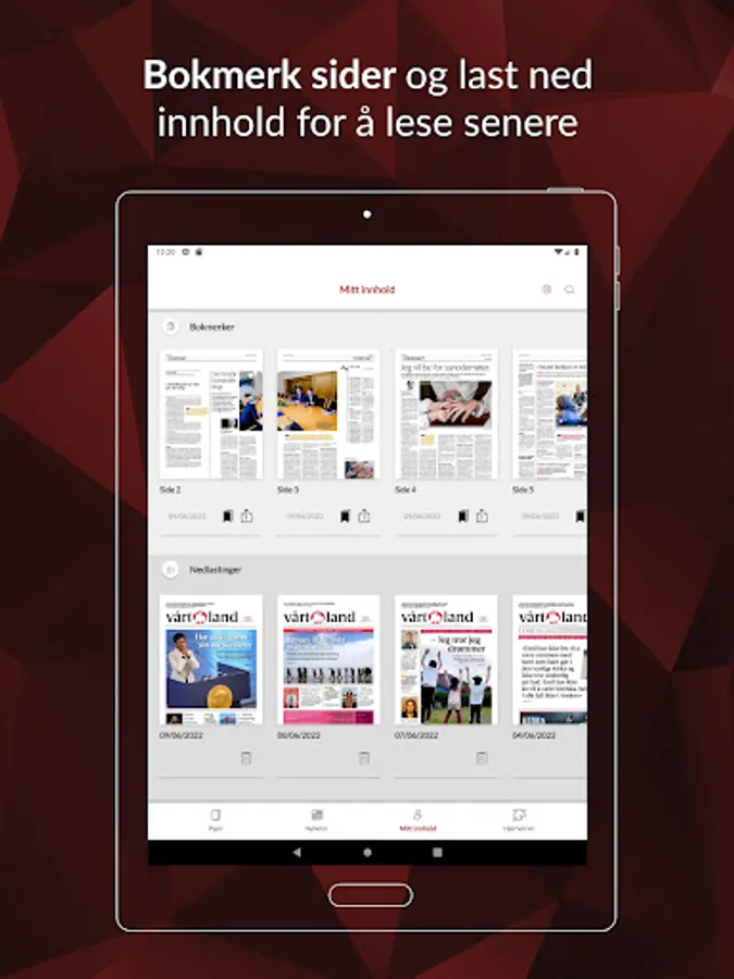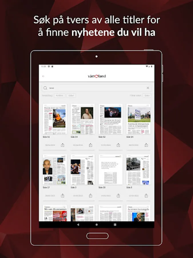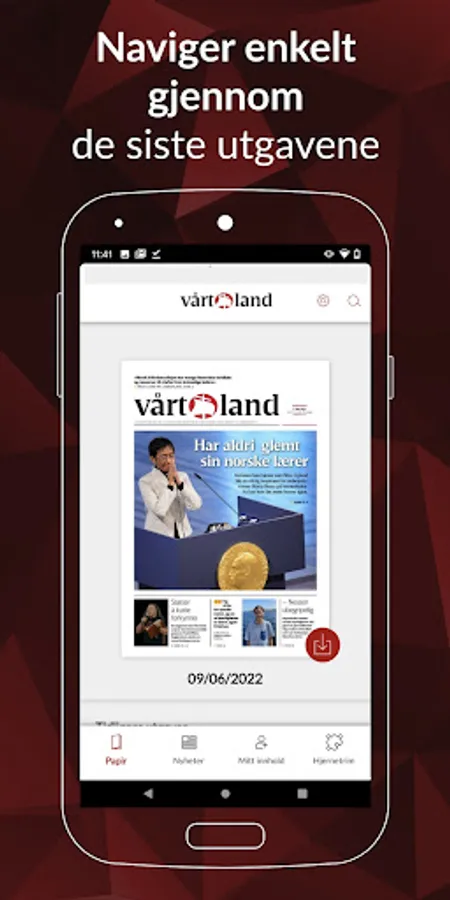 With access to Vårt Land e-newspaper, you always have an available edition of today's paper newspaper available. Tomorrow's newspaper you get access to already at. 21.41 the day before. In addition, you get access to all publications last week and access to archives with older editions.