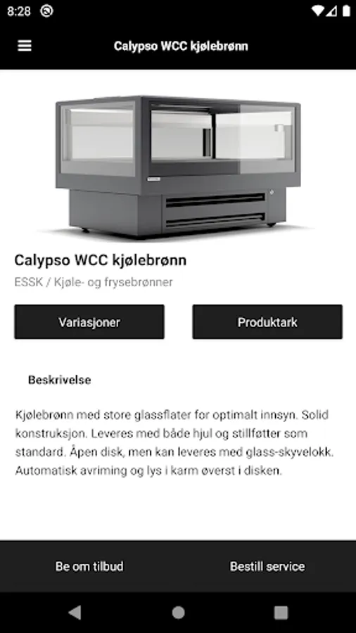In the application you can see different variations of products, order new products and service, as well as download product sheets directly from the application.