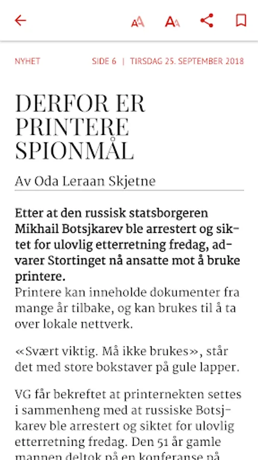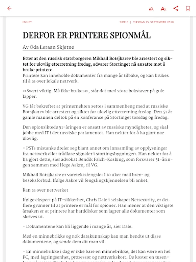 VG ePaper, a digital edition of VG's newspaper