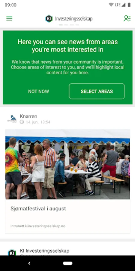 KI Investment Company intranet solution that requires login for employees to access the solution with news, corporate info and info about working conditions.