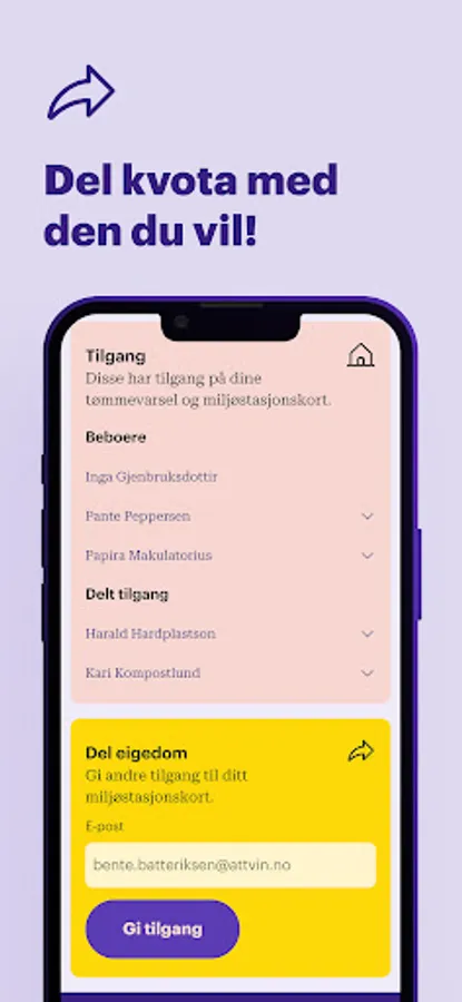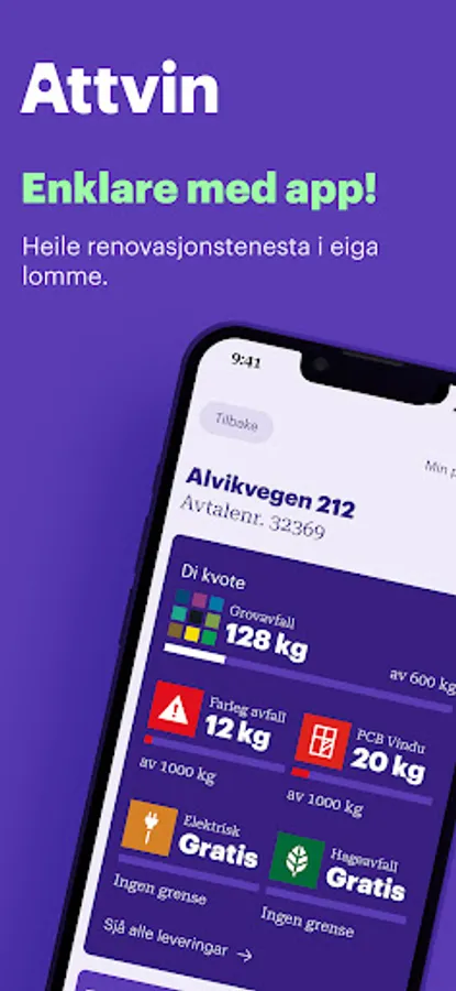 Use the Attvin app to identify yourself at our recycling stations. Now you finally stop worrying about forgetting the physical card. With Attvin, you get easy access by using unique QR codes as proof of access to your registered properties. Manage your properties, set up emptying notifications, monitor quotas and keep track of deliveries - all from one app. As a property owner, you can easily share access with other users and manage access for others in the household. All users of the Attvin app can receive shares from owners.