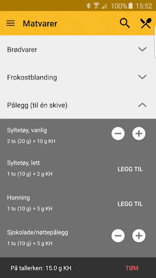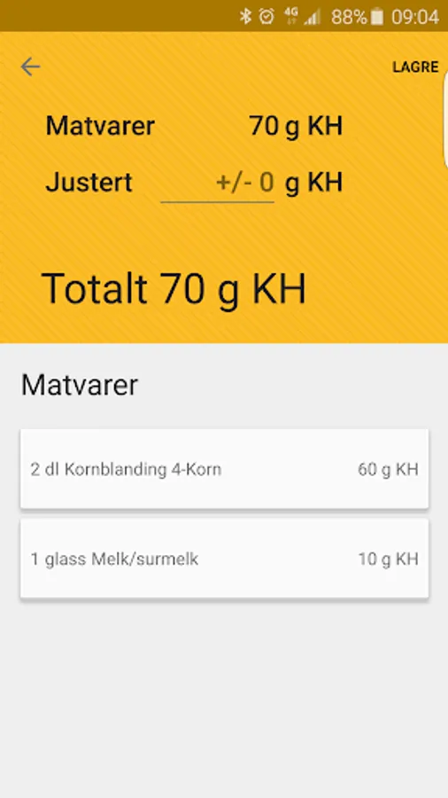 Karbo & Insulin is an evolution of the previous version and offers more functionality. In practice this means that you can sum and calculate the total amount of carbohydrates on your plate. In addition, you can take pictures of foods and meals, so you can create your own database of the foods you usually eat.