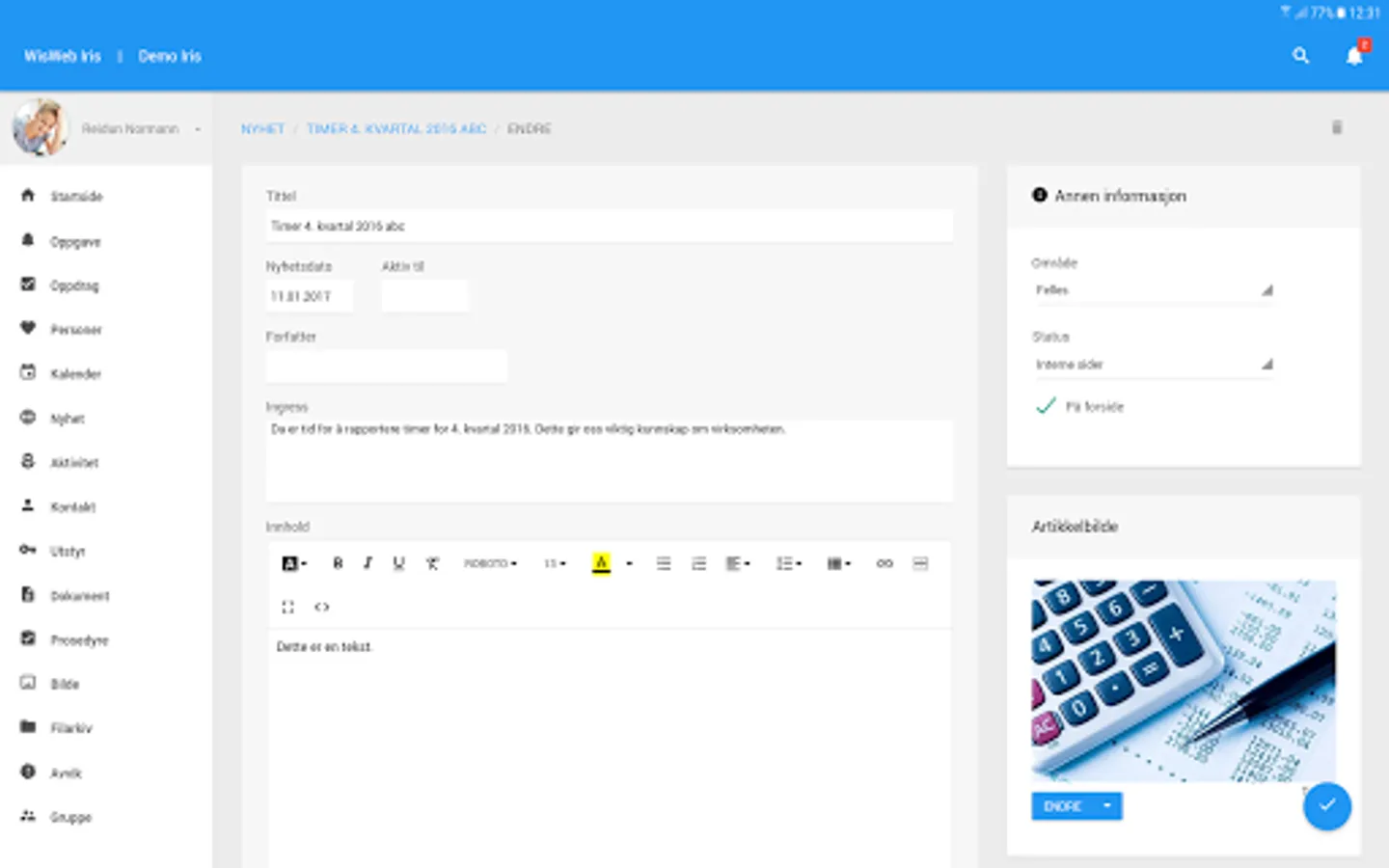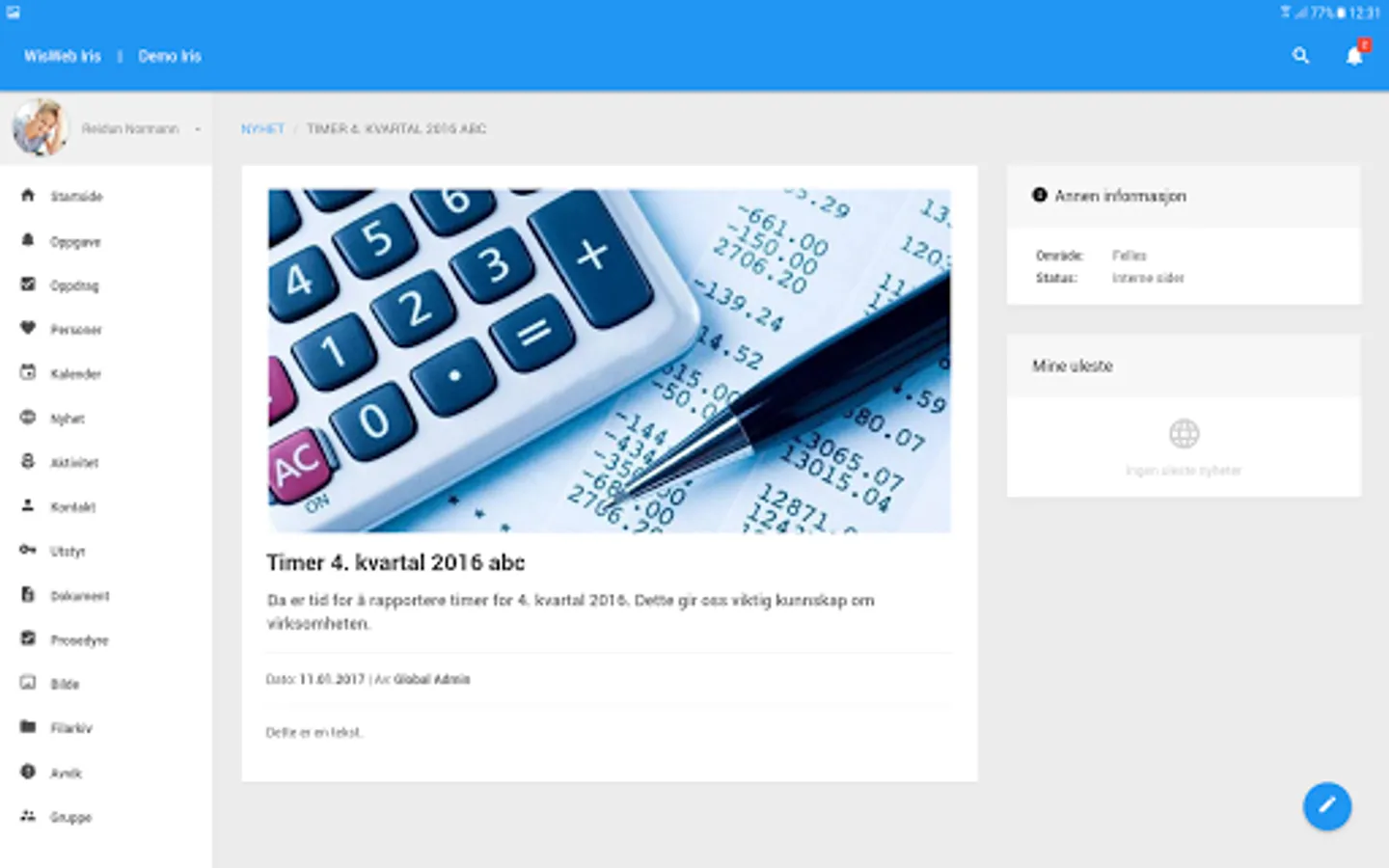 WisWeb Iris is in use by over 5,000 users in Norway, in both private companies and the public. The solution is modern and responsive, and updated continuation with new functionality and other enhancements.