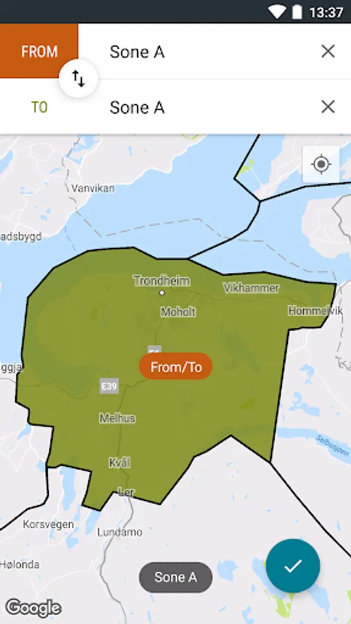 Single ticket: For bus and tram in Trøndelag county and for boat between Trondheim and Vanvikan, and Trondheim and Kristiansund.