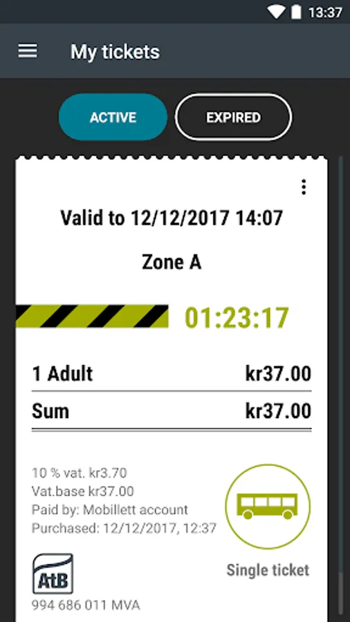 Refill your Mobillett account in the app with VISA/Mastercard, or at atb.no.