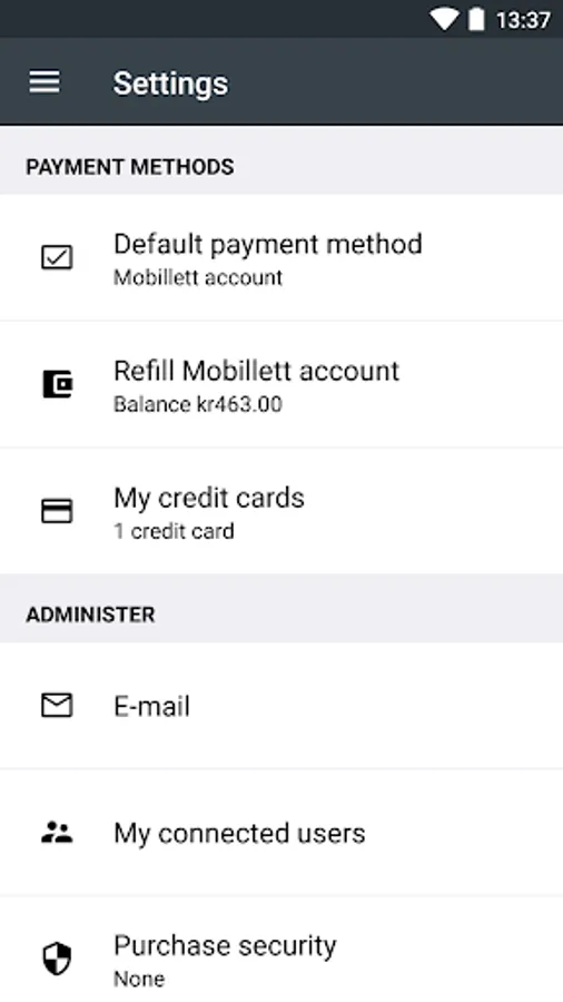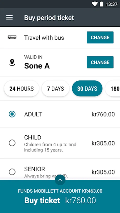 With Mobillett account you can associate multiple users with one Mobillett account and charge all their tickets to the same account.
