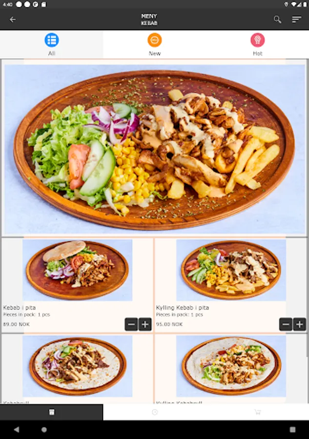 We specialize in kebabs, but also offer pizza, calzone,