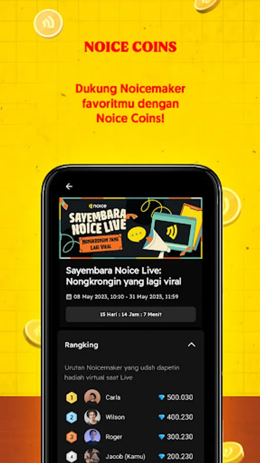For those of you who want the experience of listening to content on Noice to be even more fun, let's use Noice Coins! Make it easier to send virtual gifts to buy exclusive content.