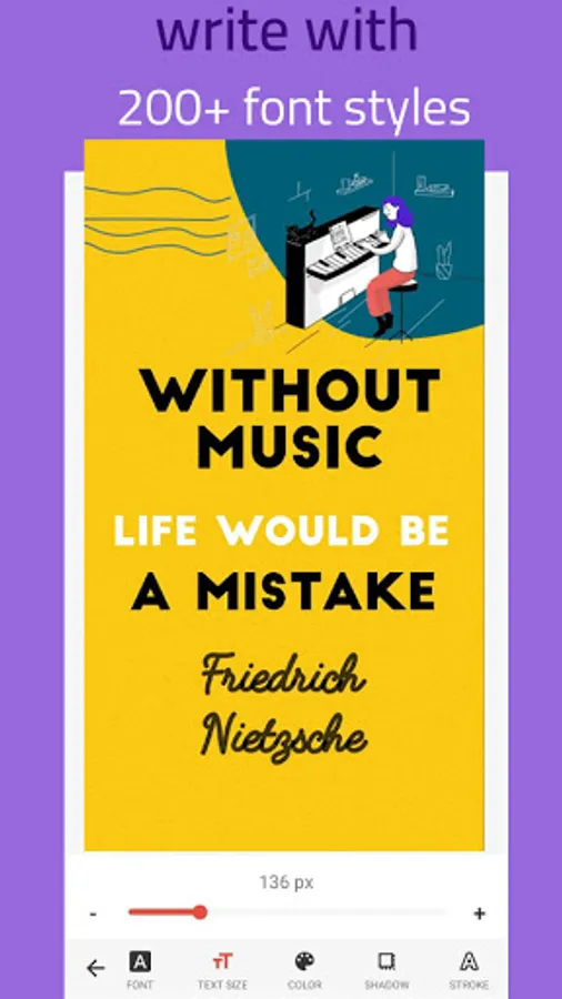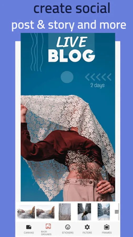 Textgram is an app that allows you to write text on photos, or edit captions (captions editor), or create a new photo with your own design. You can start with an empty canvas, insert pictures, add text and filters to create your own unique artistic design. Then you can either save your creation to edit it later on, or share it with your friends over Whatsapp, Messenger, Twitter or any social media or instant messaging application.