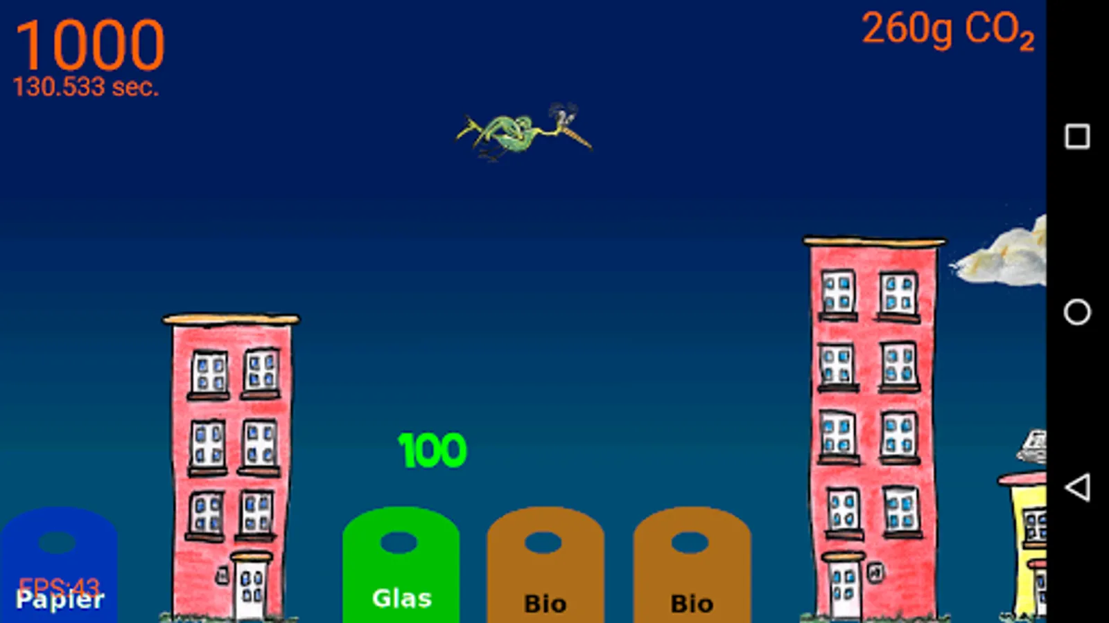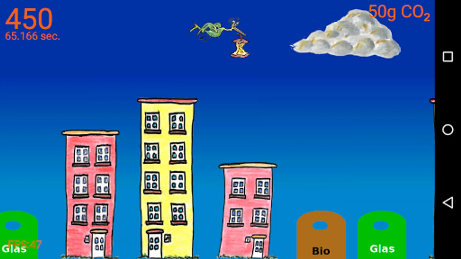 With Scrappy Bird we want to inspire the younger generation to recycle. In this game, the Scrappy Bird flies over houses and collects valuable resources such as glass, paper, metal and organic waste and throws them into suitable recycling bins. This will make the city cleaner and the resources can be recycled.