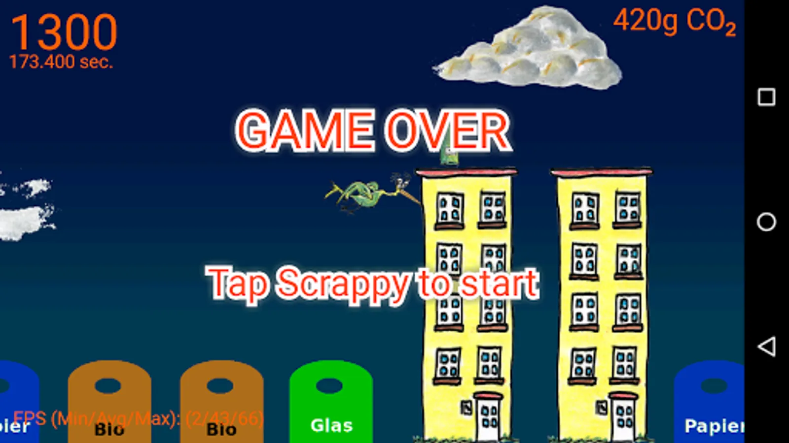 Join Scrappy on his journey through the city while collecting as much waste from the roofs as possible. But be aware: with the additional weight from the waste it will be harder for Scrappy to fly! Just click Scrappy in the right moment so that he drops the garbage again which hopefully lands in the right trash can!