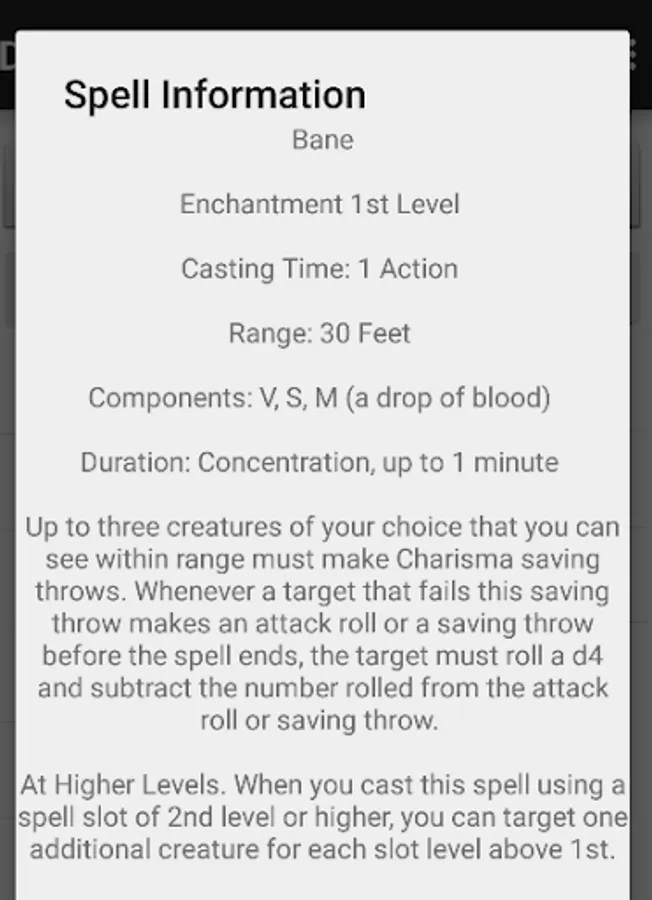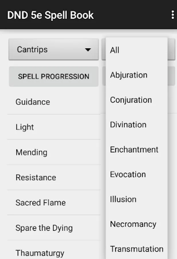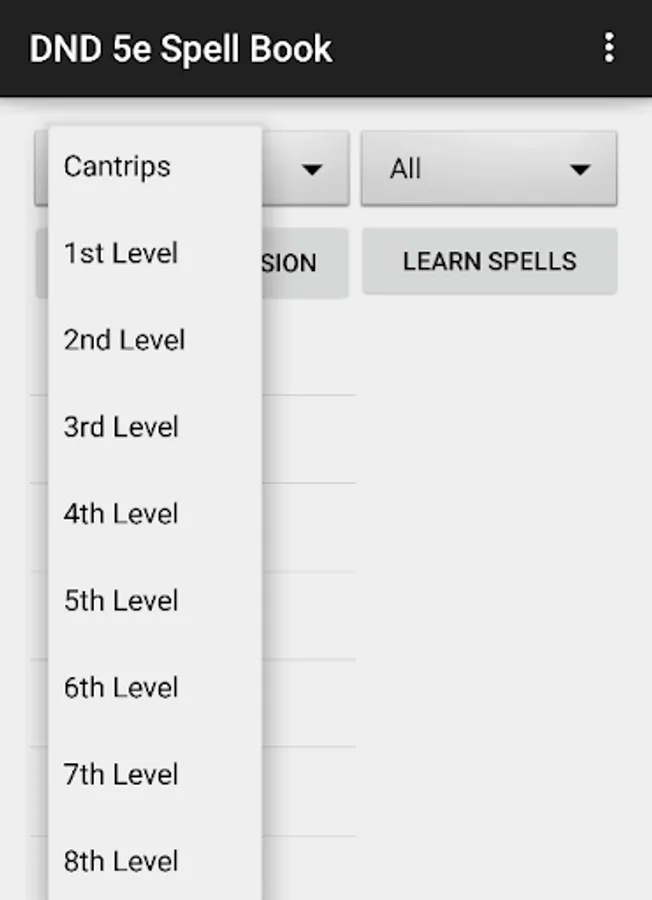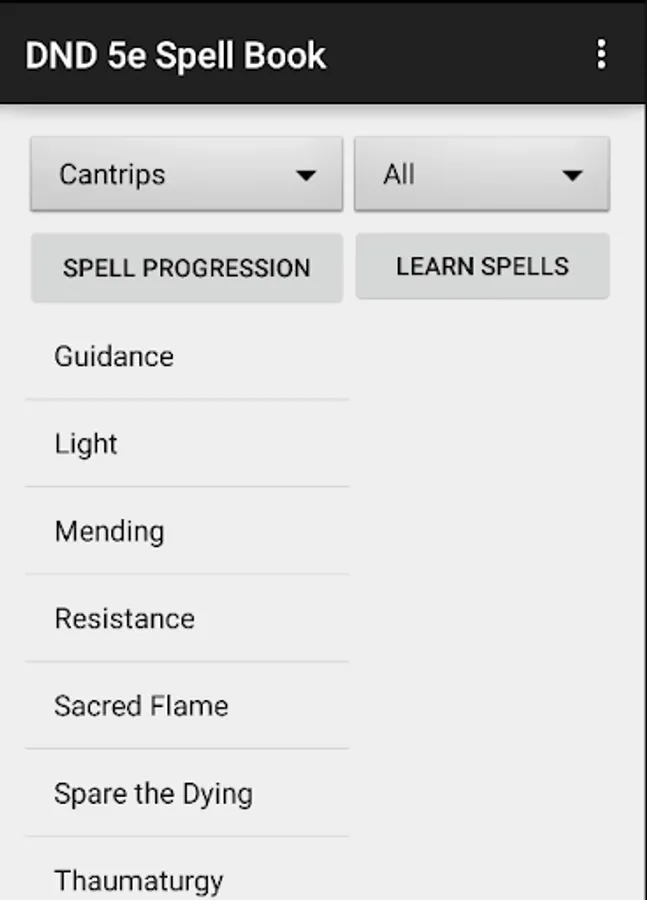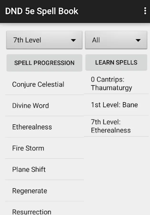 D&D 5th Edition Spell Book assist app that helps you store and manage spell lists for your D&D Character.