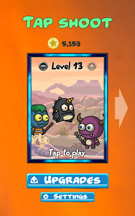 Tap and Shoot, is the free game in which you have to kill as many monsters as you can. To do this, all you have to do is touch the screen to shoot. Time is limited, you need to kill monsters to get more time to reach the end of the level.