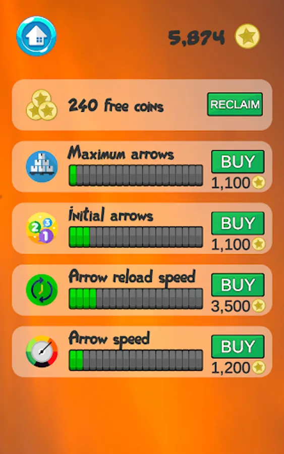 ● Upgrade your crossbow! This way you can shoot arrows faster and it will be easier for you to advance in level.