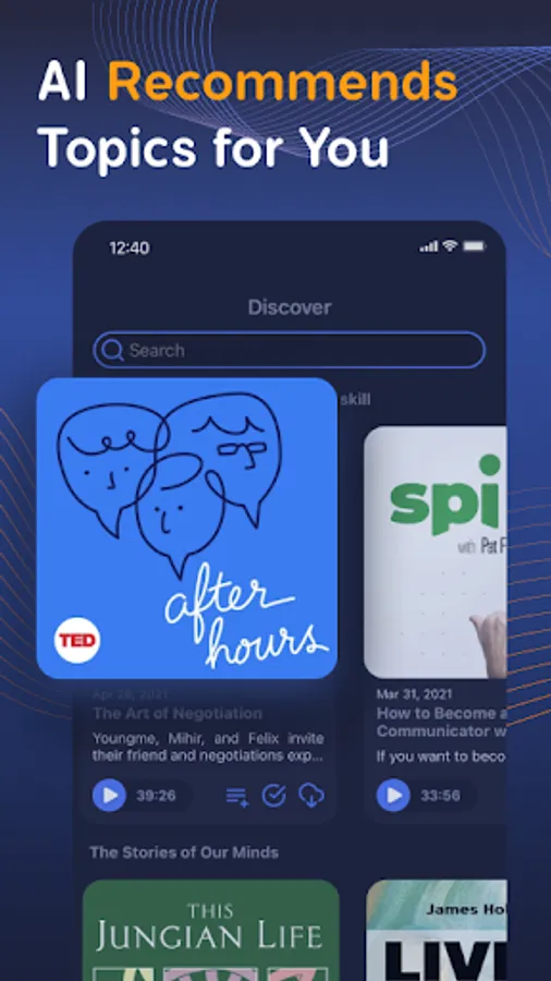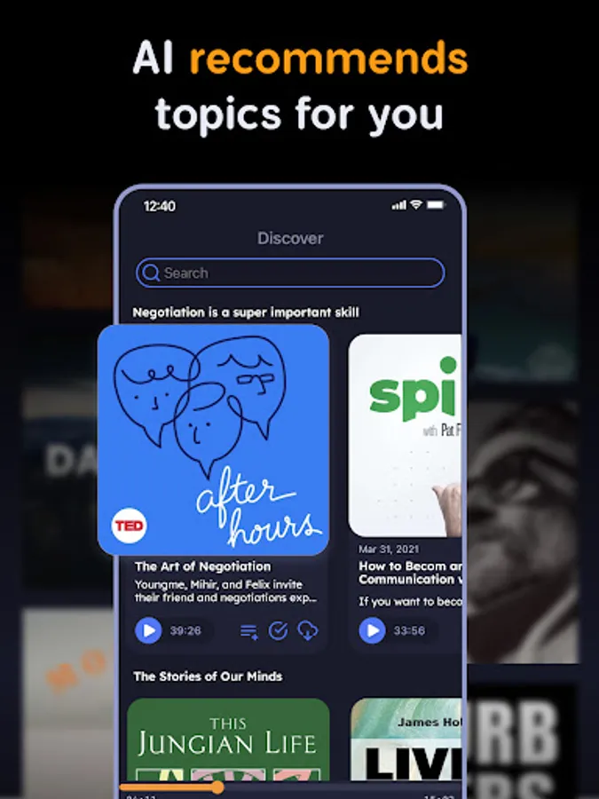 Noorami will recommend episodes based on your preferences and the topics that you have listened to. Our AI automatically generates topic sentences for you, so you know why the episodes are being recommended and what topics are discussed within them.
