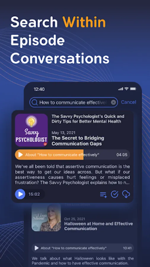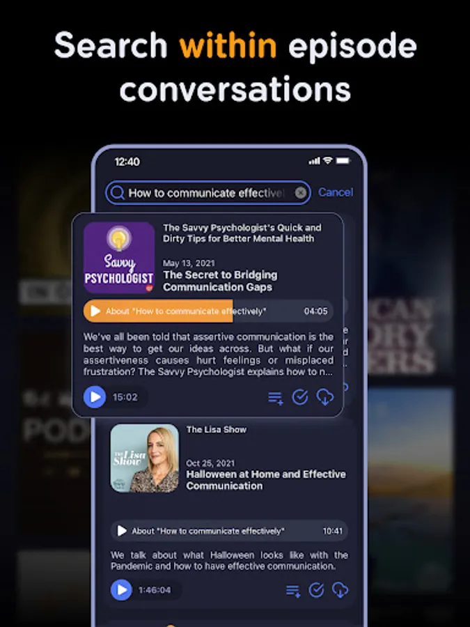 With Noorami, we find the most relevant segments of an episode for you. Simply search whatever sentence is on your mind and the results will contain both the relevant episodes and the segment of each episode that is most related to your search. You can get a feel for the episode by listening to the segment, or listen to back to back segments so that you get different perspectives on what you care about.