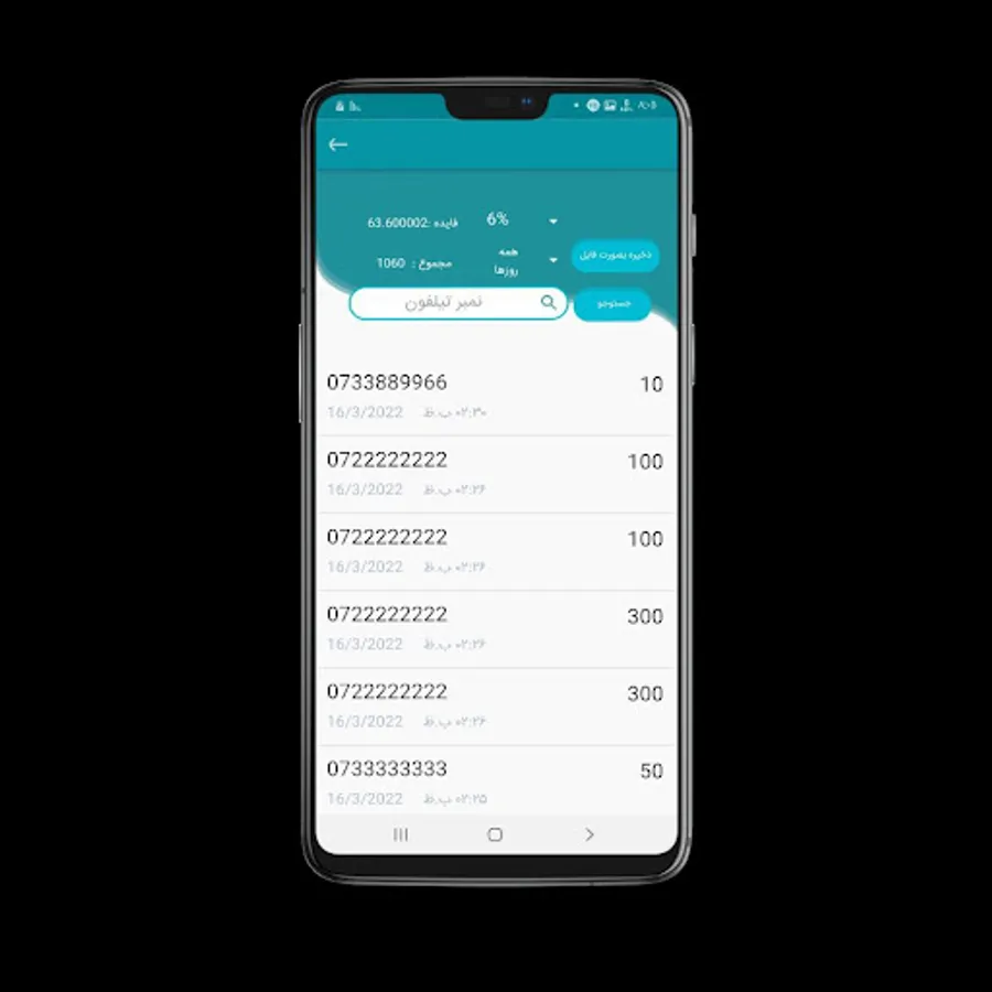Save information (mobile number, credit amount, time and date of sending)