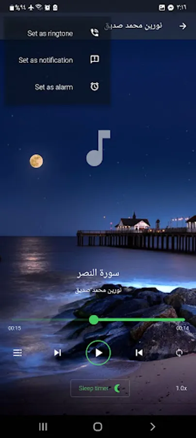 The Holy Quran recited by Sheikh Noreen Muhammad Siddiq without the Internet. You can listen to it through our application without the need to connect to the Internet at all. All you have to do is download the application from the store for the first time, and the application will work with you at any time and in any place without the need to connect to the Internet.